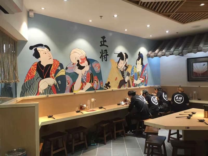 而这些店铺适合什么样的餐厅墙绘呢?有动漫卡通形式墙绘、风景画墙绘、新中式墙绘、古代人物风墙绘、日式风格墙绘、复古怀旧风墙绘、街景形式墙绘(港式、现代化)等。